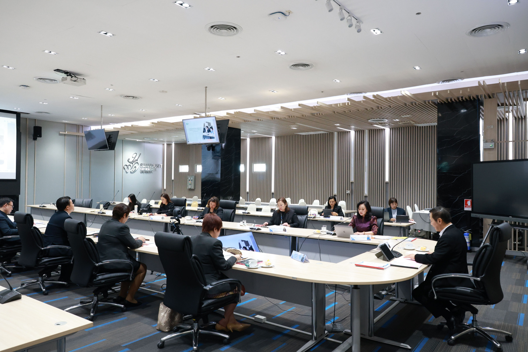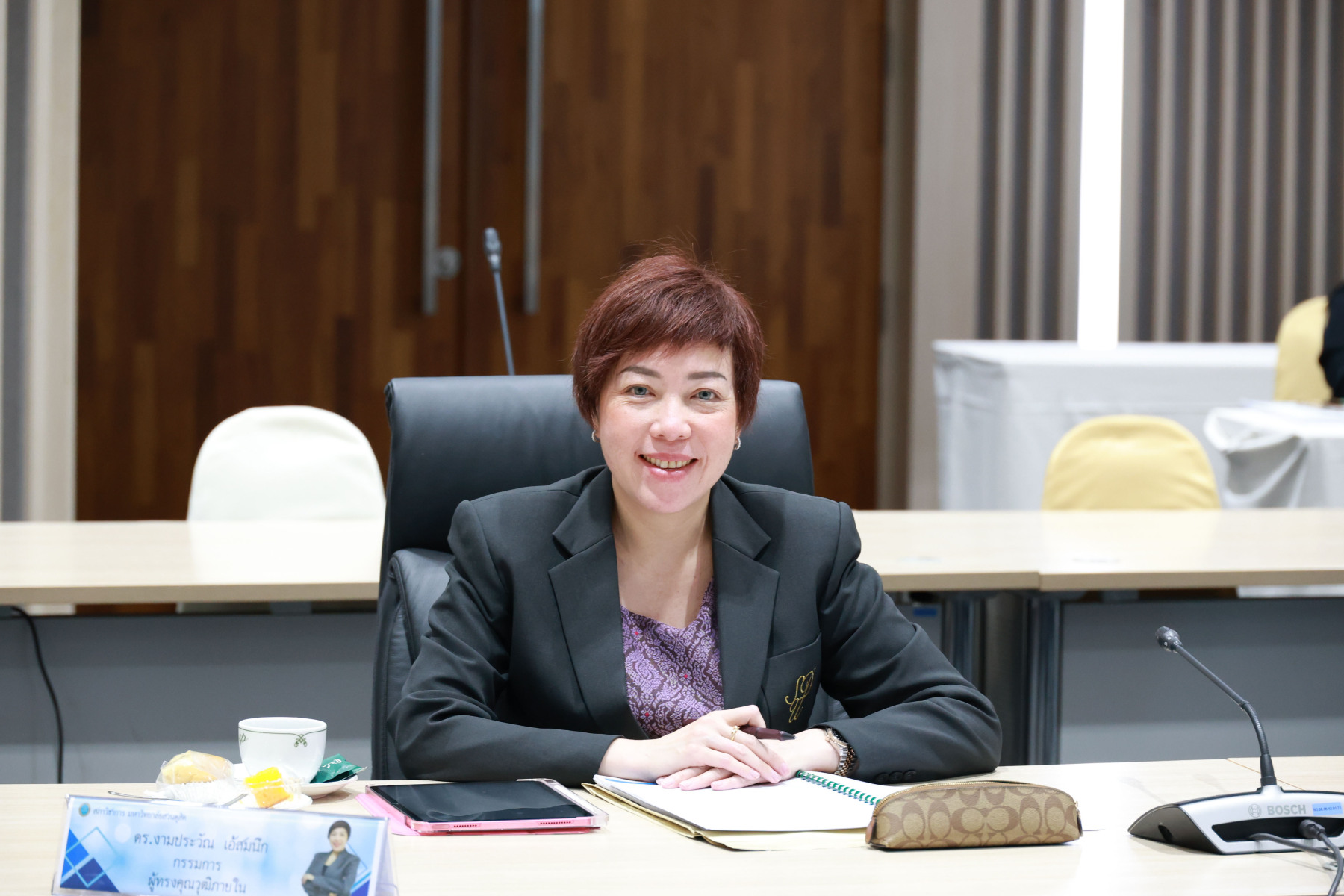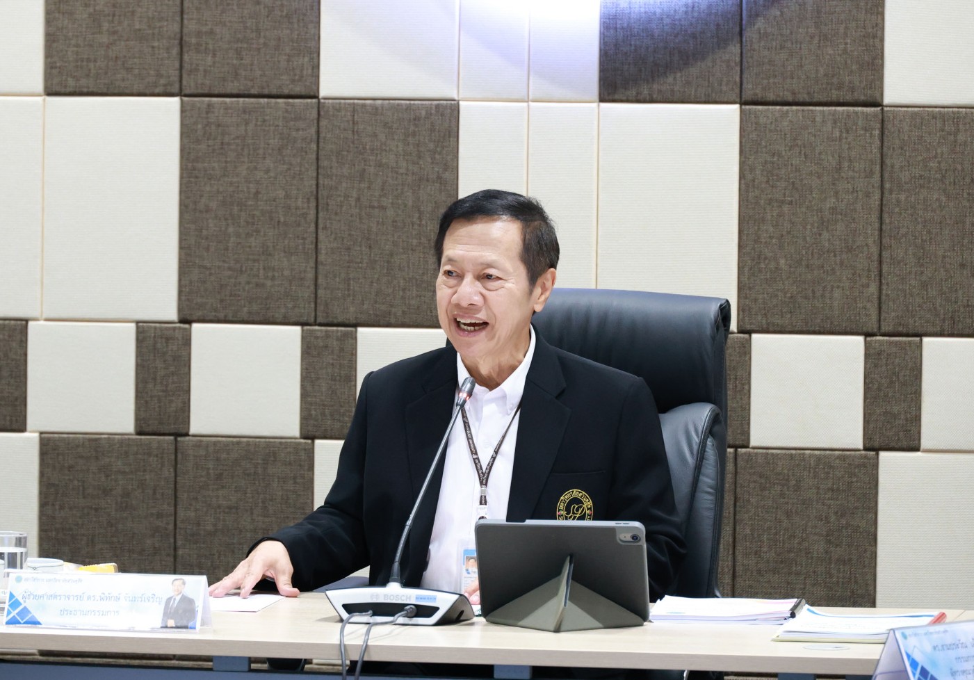 ดร.งามประวัณ เอ้สมนึก คณบดีโรงเรียนกฎหมายและการเมือง เข้าร่วมการประชุม ในการประชุมเพื่อสรรหากรรมการสภาวิชาการ ประเภทผู้ทรงคุณวุฒิภายนอก ทางด้านกฎหมาย เมื่อวันอังคารที่ 7 เมษายน 2569 ณ ห้องประชุมชั้น 5 อาคารสำนักงานมหาวิทยาลัย