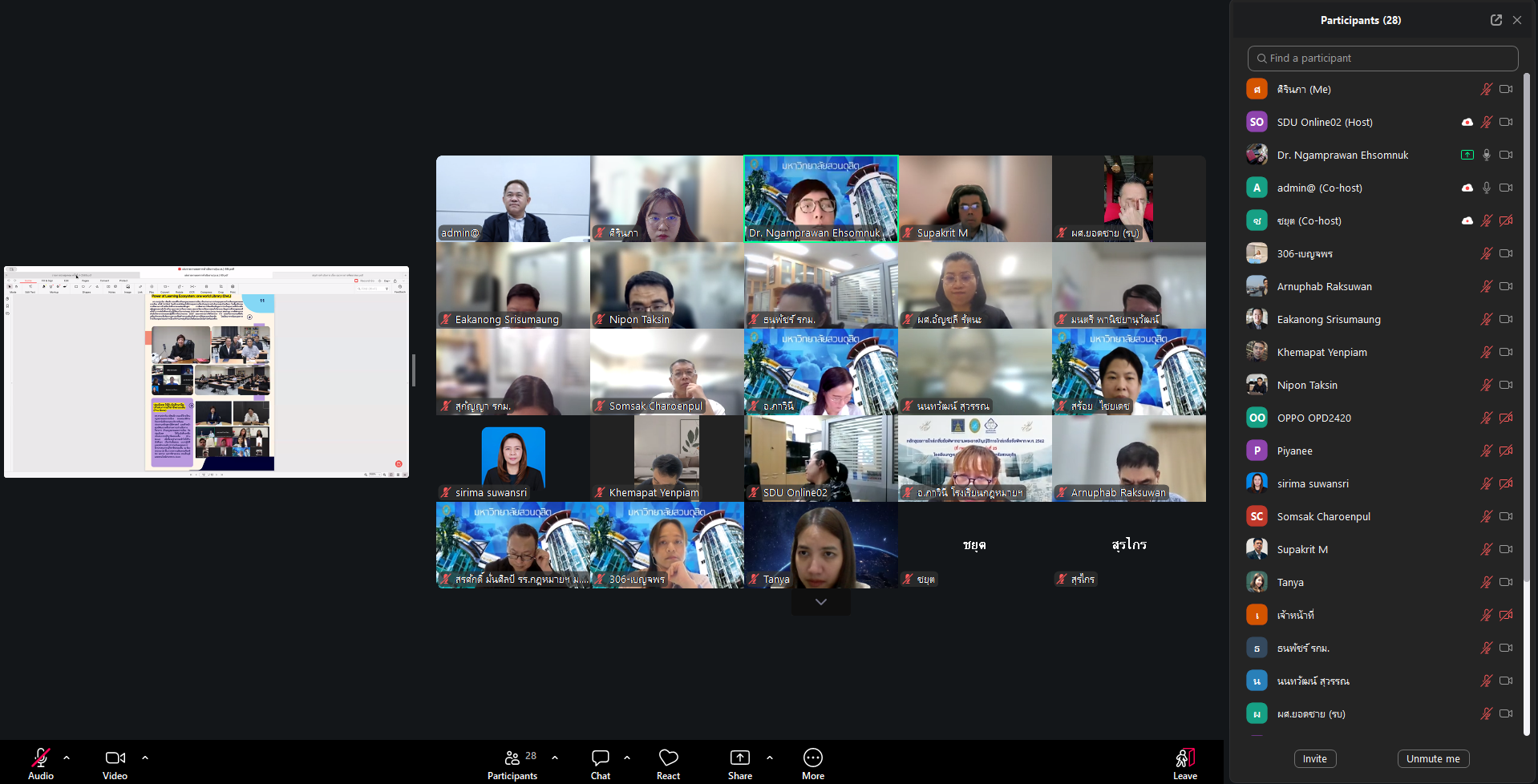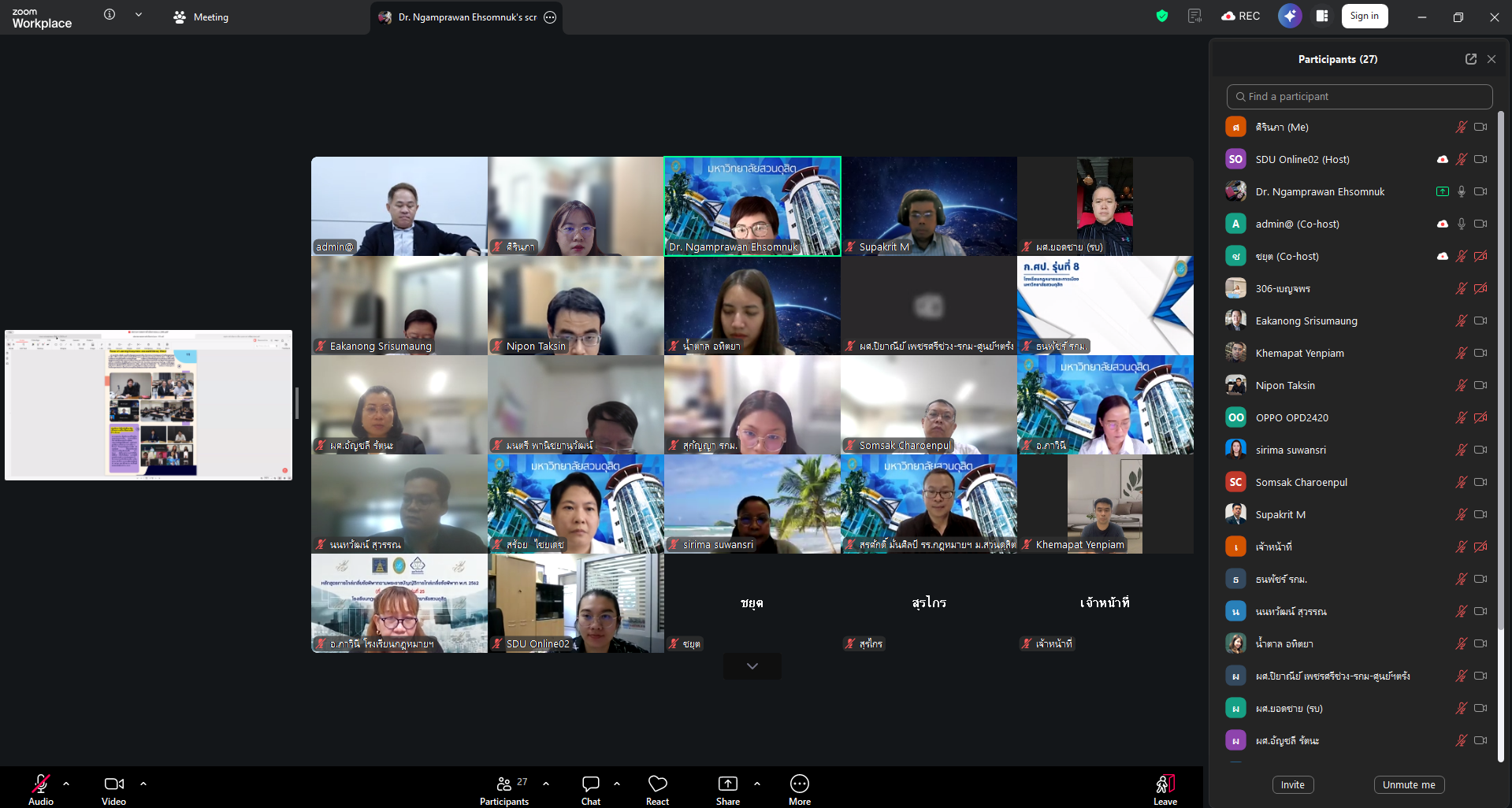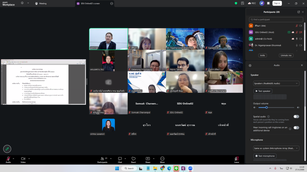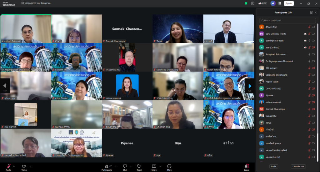 ดร.งามประวัณ เอ้สมนึก คณบดีโรงเรียนกฎหมายและการเมือง เป็นประธานการประชุมบุคลากรโรงเรียนกฎหมายและการเมือง ครั้งที่ 4/2569 โดยมีวาระสำคัญแจ้งที่ประชุมทราบเกี่ยวกับสรุปการดำเนินงานของโรงเรียนฯ ในเดือนเมษายน การสอนภาษาอังกฤษของโรงเรียนกฎหมายและการเมือง รายงานจำนวนนักศึกษาแต่ละหลักสูตร และจำนวนนักศึกษาที่ผ่านการทดสอบภาษาอังกฤษของแต่ละหลักสูตร การประกันคุณภาพระดับหลักสูตรและระดับคณะ ร่างโจทย์วิจัยใหม่ภายใต้คลับกกฎหมายและการเมืองแบบบูรณาการศาสตร์ และการปรับคุณสมบัติของผู้รับทุนสนับสนุน FF71 และกิจการนักศึกษา โดยมีคณาจารย์และบุคลากรโรงเรียนกฎหมายและการเมืองเข้าร่วมประชุม Online ผ่านระบบ Zoom Meetings เมื่อวันจันทร์ที่ 27 เมษายน 2569 เวลา 13.30 -15.00 น.
