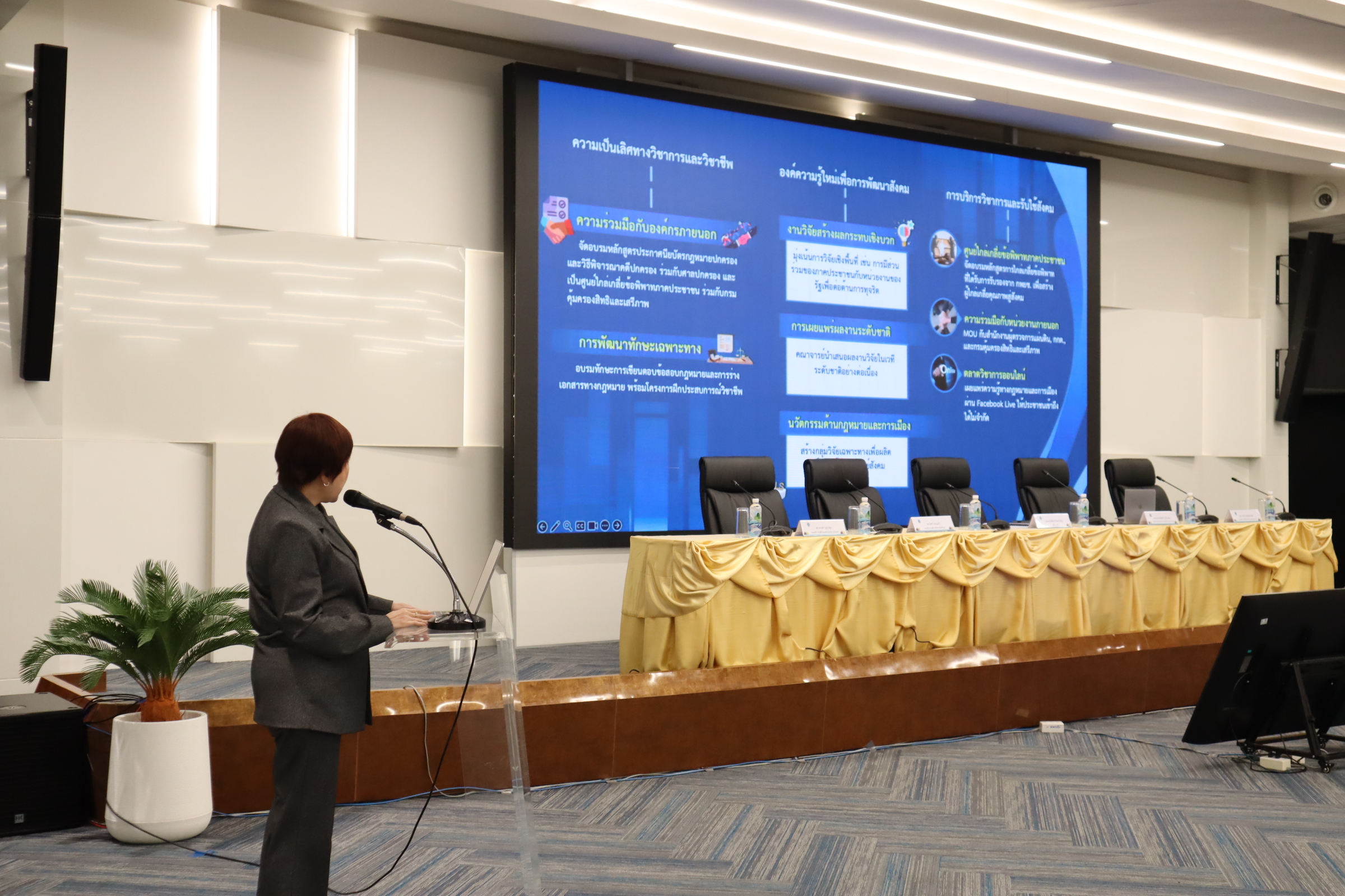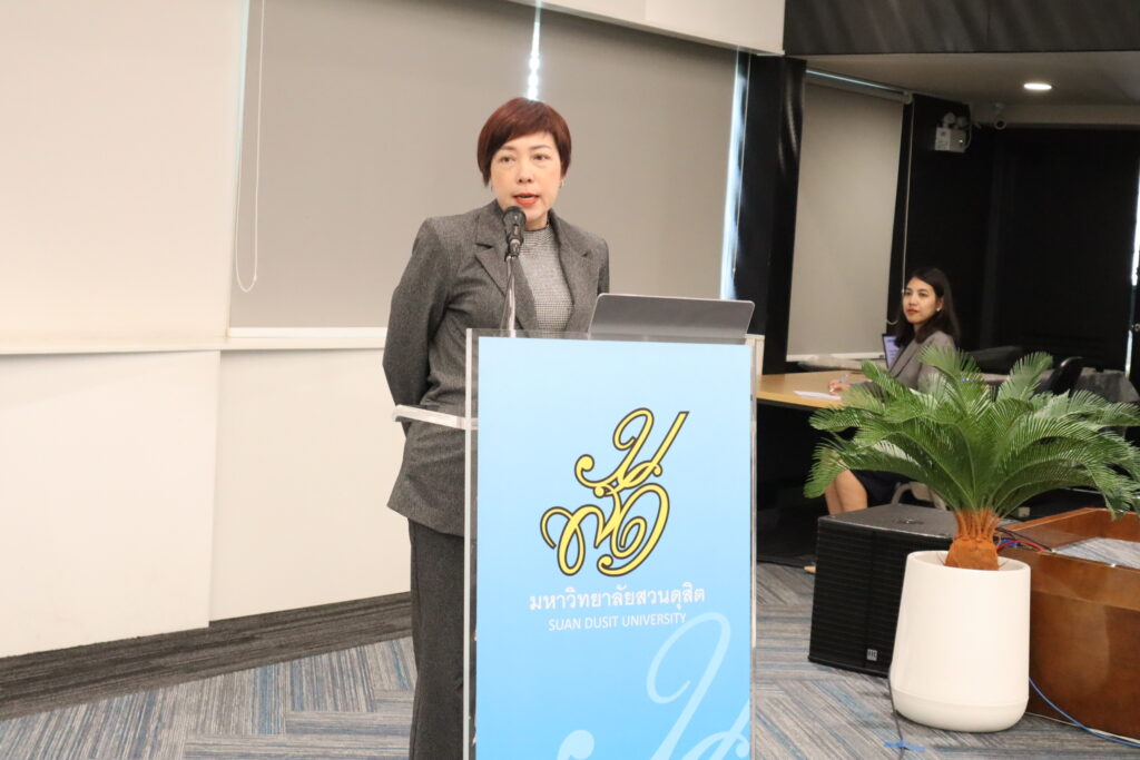 This was followed by policy directives from Suan Dusit University’s executives, led by Asst.Prof. Dr. Pitauk Chancharoen, President of Suan Dusit University, on the topic “Direction and Role of the School of Law and Politics as the 5th Identity of Suan Dusit University,” and Asst.Prof. Dr. Pornchanit Kaew-nate, Vice President for Academic and International Affairs, on “From Quality to International Standards: Policies on Academics and International Collaboration.” Additional recommendations came from all Vice Presidents, including Assoc.Prof. Pacharee Suankaew, Vice President for Student Affairs; Dr. Waranee Vessoontorntep, Vice President for Suphanburi Campus; and Dr. Sawong Boonpluk, Vice President for Information Technology.