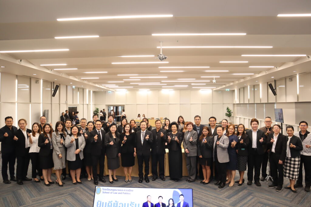 The event also featured operational plans presented by the School of Law and Politics executives: Asst.Prof. Dr. Arnuphap Raksuwan, Vice Dean for Academics and Innovation; Lecturer Pinyo Khoowattanasenee, Vice Dean for Student Affairs and Community Services; Asst.Prof. Dr. Eakanong Srisamang, Assistant Dean for Research and Quality Assurance; and Asst.Prof. Kanyakarn Sathiansukon, Assistant Dean for International Relations.
