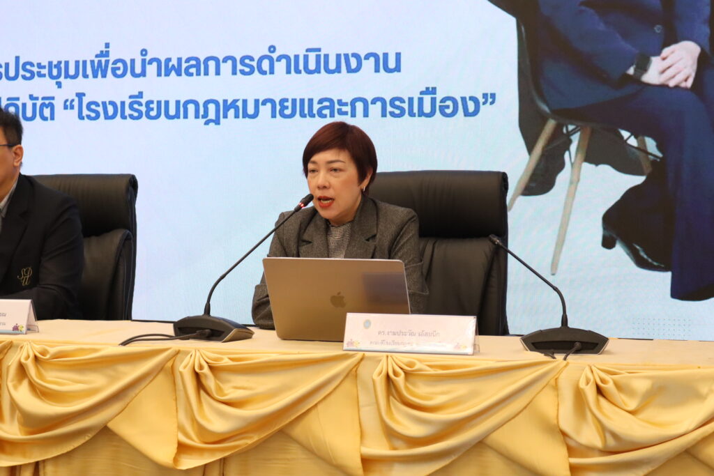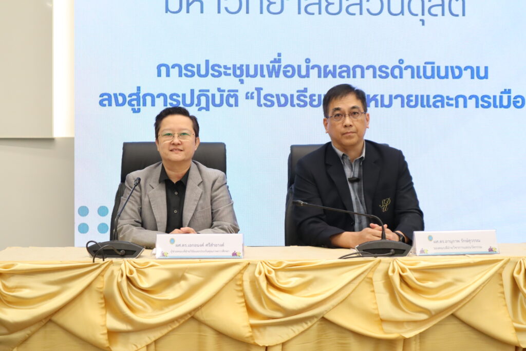 The School of Law and Politics, Suan Dusit University, held a meeting to receive the school’s operational policies. Dr. Ngamprawan Aehsomnuk, Dean of the School of Law and Politics, extended a welcome to the university executives and delivered a presentation on the school’s context and future vision under the topic “From Success to the Next Chapter of the School of Law and Politics.”