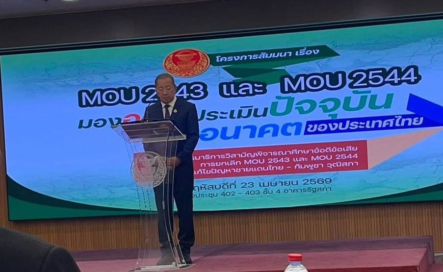 ดร.งามประวัณ เอ้สมนึก คณบดีโรงเรียนกฎหมายและการเมือง นำคณะคณาจารย์โรงเรียนกฎหมายและการเมือง เข้าร่วมการสัมมนา ในหัวข้อ “MOU 2543 และ MOU 2544 : มองอดีต ประเมินปัจจุบัน มุ่งสู่อนาคตของประเทศไทย” จัดโดยคณะกรรมาธิการวิสามัญพิจารณาศึกษาข้อดีข้อเสียการยกเลิก MOU 2543และ MOU 2544 เพื่อแก้ไขปัญหาชายแดนไทย-กัมพูชา วุฒิสภา โดยมีวัตถุประสงค์เพื่อเผยแพร่ความรู้พื้นฐานและสาระสำคัญ เพื่อแลกเปลี่ยนและรับฟังความคิดเห็นจากทุกภาคส่วน พร้อมทั้งเป็นแนวทางและข้อเสนอแนะเชิงนโยบายเพื่อเป็นข้อมูลประกอบการตัดสินใจของรัฐบาล ในวันพฤหัสบดีที่ 23 เมษายน 2569 ระหว่างเวลา 08.00 -12.15 น. ณ ห้องประชุม 402 – 403 ชั้น 4 อาคารรัฐสภา (สว.)