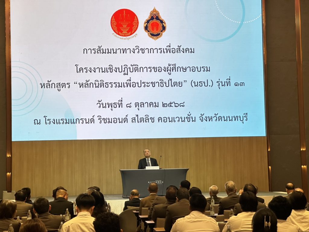 ผศ.สรศักดิ์ มั่นศิลป์ รองคณบดีโรงเรียนกฎหมายและการเมือง มหาวิทยาลัยสวนดุสิต นำบุคลากร และนักศึกษาโรงเรียนกฎหมายและการเมือง เข้าร่วมกิจกรรมการสัมมนาทางวิชาการเพื่อสังคมโครงการอบรมหลักสูตร “หลักนิติธรรมเพื่อประชาธิปไตย”(นธป.) รุ่นที่ 13 จัดโดยวิทยาลัยศาลรัฐธรรมนูญ ซึ่งได้รับเกียรติจาก ศ.ดร.นครินทร์ เมฆไตรรัตน์ ประธานศาลรัฐธรรมนูญ กล่าวเปิดงาน วันที่ 8 ตุลาคม 2568 เวลา 08.30 – 14.00 น. ณ ห้องประชุม Richmond Ballroom 1 ตึก North Wing ชั้น 6 โรงแรมแกรนด์ริชมอนด์ สไตลิช คอนเวนชั่น จังหวัดนนทบุรี