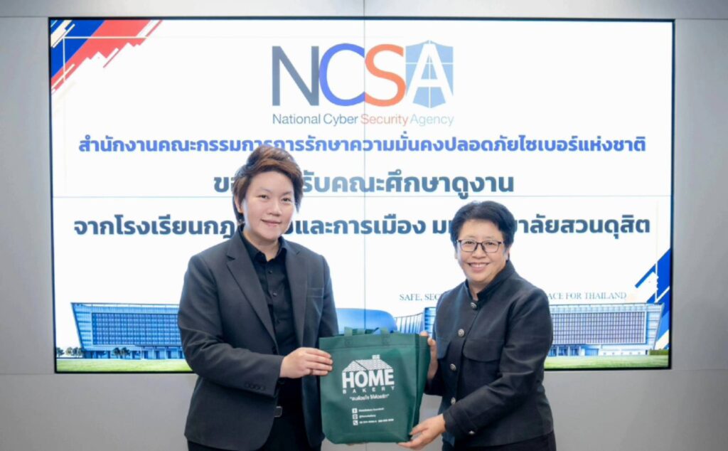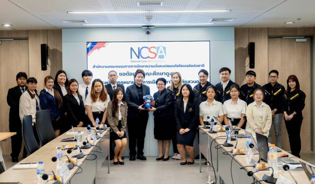 อาจารย์ ดร. มุทิตา มากวิจิตร์ อาจารย์ประจำโรงเรียนกฎหมายและการเมือง ในฐานะผู้สอนรายวิชาปัญหาสังคมและอาชญากรรมร่วมสมัย นำนักศึกษาหลักสูตรกฎหมายมหาชนและการบริหารงานยุติธรรม โรงเรียนกฎหมายและการเมือง มหาวิทยาลัยสวนดุสิตเข้าศึกษาดูงาน ณ สำนักงานคณะกรรมการการรักษาความมั่นคงปลอดภัยไซเบอร์แห่งชาติ (สกมช.) เมื่อวันอังคารที่ 27 มกราคม 2569 เวลา 09.00-12.00 น.