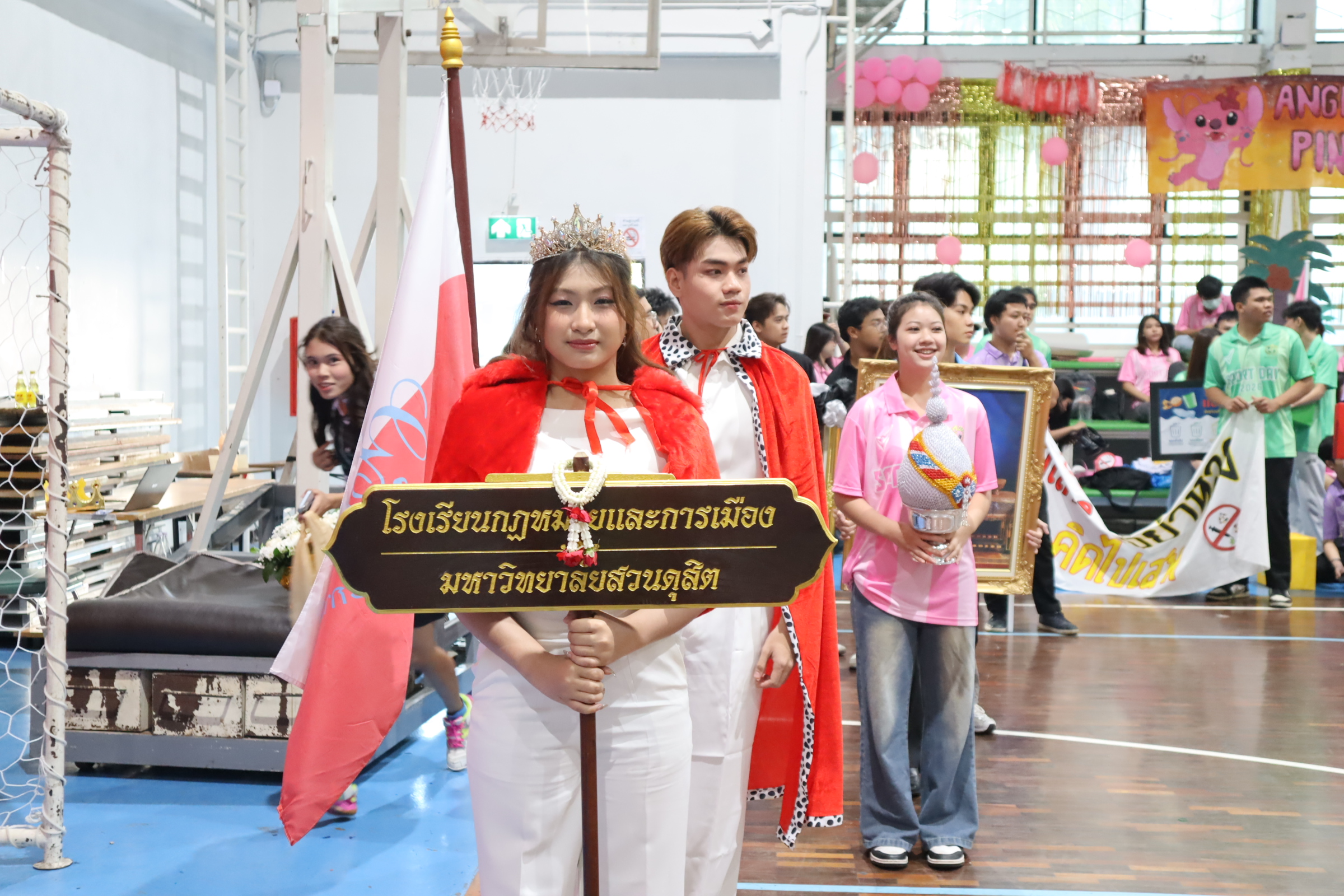 ดร.งามประวัณ เอ้สมนึก คณบดีโรงเรียนกฎหมายและการเมือง เป็นประธานในพิธีเปิดโครงการกีฬาสีสานสัมพันธ์ต่อต้านยาเสพติด โรงเรียนกฎหมายและการเมือง ประจำปีการศึกษา 2568 โดยมีคณาจารย์ เจ้าหน้าที่ และนักศึกษาโรงเรียนกฎหมายและการเมืองทุกหลักสูตรเข้าร่วมกิจกรรม โดยมีกิจกรรม ดังนี้ ขบวนพาเหรดการรณรงค์ต่อต้านอบายมุข การแข่งขันกีฬาฟุตซอล แบตมินตัน และแชร์บอล รอบชิงชนะเลิศ กิจกรรมสานสัมพันธ์ และประกาศผลการแข่งขันกีฬาประเภทต่างๆ มอบถ้วยรางวัลแก่นักกีฬา เมื่อวันอาทิตย์ที่ 1 กุมภาพันธ์ 2569 เวลา 08.30 – 18.00 น. ณ โรงยิม อาคารพลศึกษา ชั้น 2 มหาวิทยาลัยสวนดุสิต