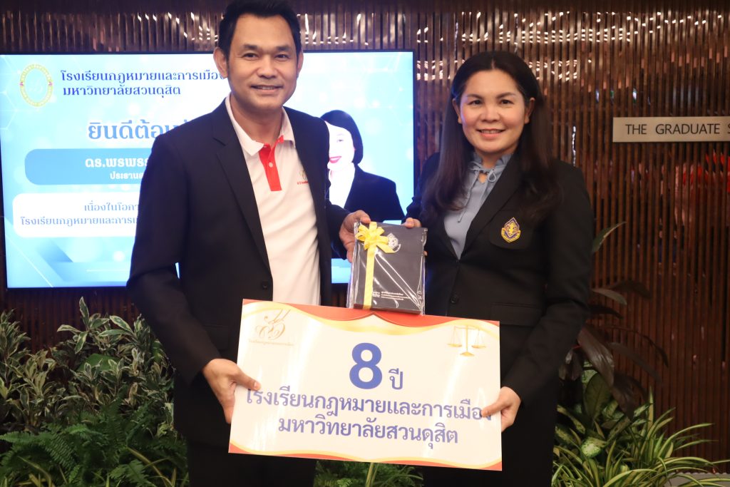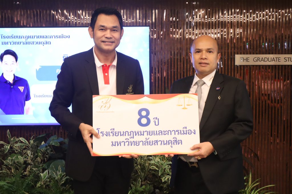 เนื่องในโอกาสครบรอบ 8 ปีโรงเรียนกฎหมายและการเมือง : อัตลักษณ์ใหม่แห่งมหาวิทยาลัยสวนดุสิต เมื่อวันที่ 5 ตุลาคม 2568 เวลา 14.00 – 15.30 น. ณ ห้องประชุม Graduate studio ชั้น 5 อาคารเฉลิมพระเกียรติ 50 พรรษา มหาวชิราลงกรณ