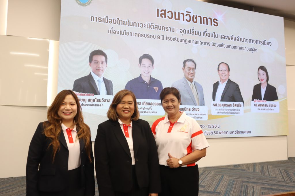 โรงเรียนกฎหมายและการเมือง มหาวิทยาลัยสวนดุสิต จัดเสวนาวิชาการ เรื่อง “การเมืองไทยในภาวะนิติสงคราม : จุดเปลี่ยน เงื่อนไข และพลังอำนาจทางการเมือง”