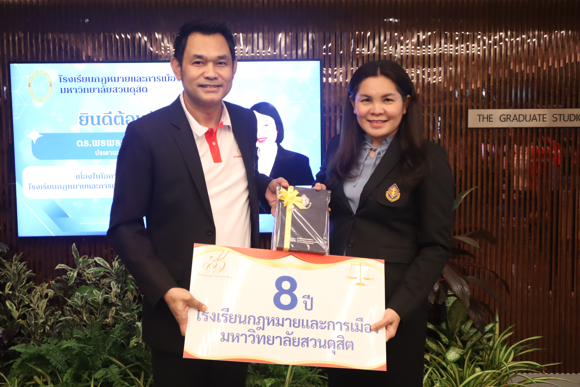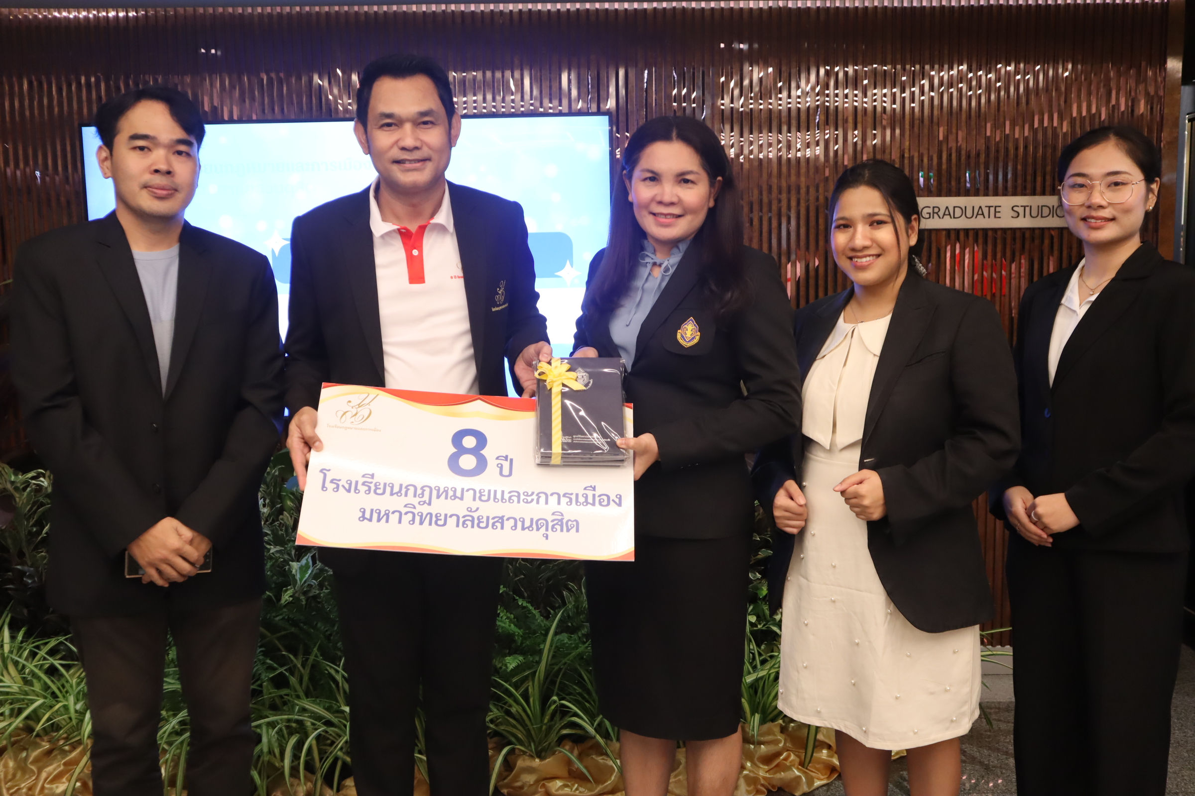 เนื่องในโอกาสครบรอบ 8 ปีโรงเรียนกฎหมายและการเมือง : อัตลักษณ์ใหม่แห่งมหาวิทยาลัยสวนดุสิต เมื่อวันที่ 5 ตุลาคม 2568 เวลา 14.00 – 15.30 น. ณ ห้องประชุม Graduate studio ชั้น 5 อาคารเฉลิมพระเกียรติ 50 พรรษา มหาวชิราลงกรณ